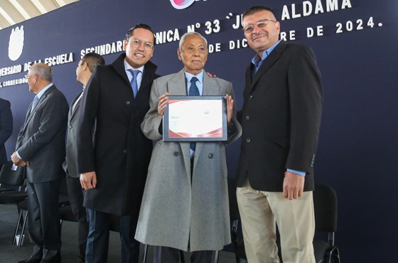 El presidente municipal de Corregidora, Chepe Guerrero, anunció la construcción de una aula-cocina para el próximo año en beneficio de las y los alumnos de la Escuela Secundaria Técnica No. 33 «Juan Aldama» en la Colonia Los Ángeles, donde develó una placa conmemorativa, por el 30 aniversario.
