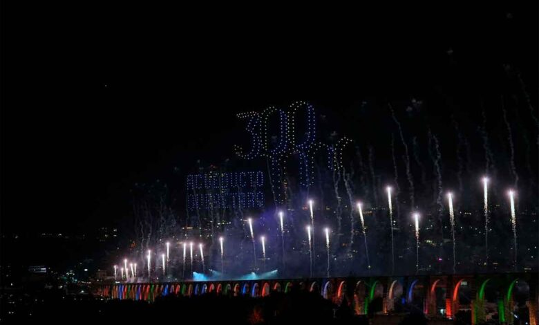 * La conmemoración culminó con un show de luces, sonido y drones para conmemorar este emblemático monumento.
