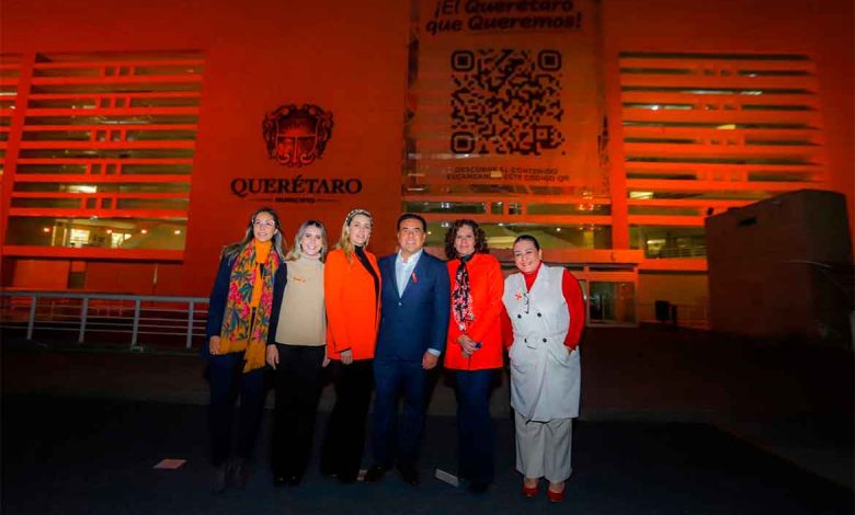 En el marco del Día Internacional de la Eliminación de la Violencia contra las Mujeres que se conmemoró este 25 de noviembre, el Presidente Municipal de Querétaro, Luis Nava, en compañía de su esposa y Presidenta del Patronato del Sistema Municipal DIF, Arahí Domínguez, realizaron el encendido de la fachada del Centro Cívico en color naranja, y reiteraron el firme compromiso del municipio de eliminar la violencia desde la perspectiva de la prevención, la atención directa y el empoderamiento de las mujeres.