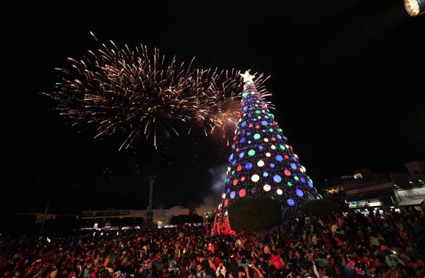 Como primera atracción, las autoridades estatales y municipales presenciaron un espectáculo a cargo de personajes de películas infantiles, que dio paso al encendido del Pino Monumental de 25 metros de altura que cuenta una estrella tridimensional del 4.5 metros, con estructura de acero, luces y alrededor se montó una gran villa navideña.