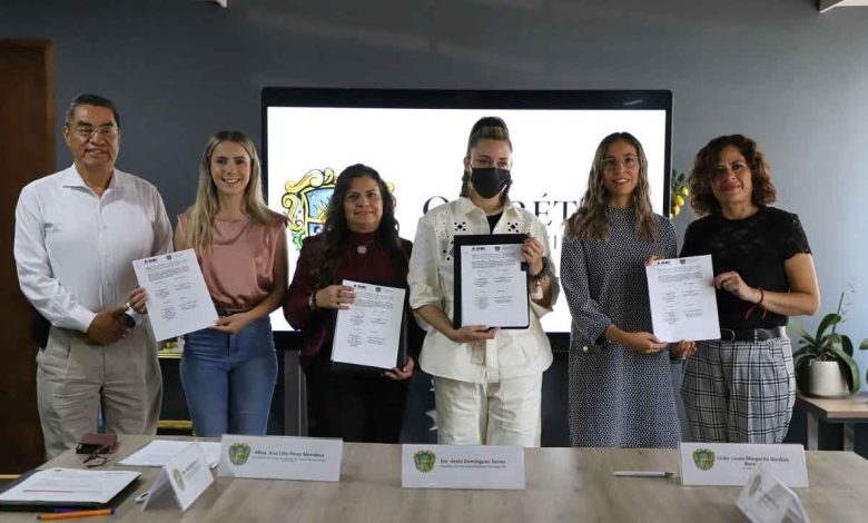 La Presidenta del Patronato del Sistema Municipal DIF, Arahí Domínguez, atestiguó la firma del convenio entre la Secretaría de la Mujer del Municipio de Querétaro y la Junta Local Ejecutiva en el Estado de Querétaro del Instituto Nacional Electoral (INE), para coordinar acciones para proteger los derechos humanos, especialmente los de las mujeres, y promover la cultura democrática y la participación ciudadana informada.
