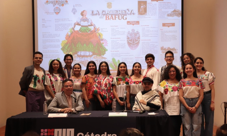 Por su parte, el Mtro. Roberto Martínez Rocha, Director del BAFUG, explicó que, a lo largo de los tiempos, la indumentaria de la cultura mexicana ha sido muy vasta con el uso de penachos, joyería, textiles y tocados, los cuales representan la identidad de un pueblo, una nación o una región.