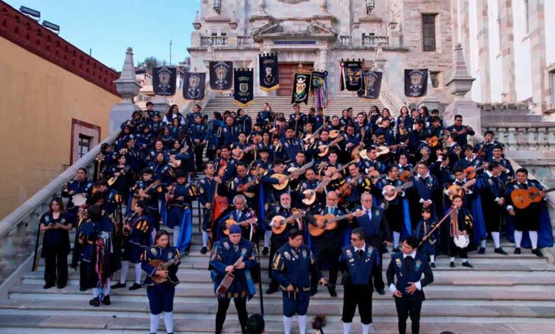 Enseguida, se realizó una tradicional ‘callejoneada’ a cargo de las cinco estudiantinas universitarias, desde la Escalinata de la UG hasta el Teatro Juárez, donde las autoridades develaron una placa conmemorativa y se proyectó un video con la historia de esta expresión artística, además del testimonio de sus antecedentes, precursores y primeros directores.
