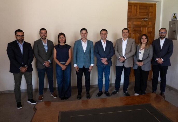 El presidente municipal de El Marqués, Rodrigo Monsalvo Castelán, acompañado por el secretario del Ayuntamiento, Rodrigo Mesa Jiménez, sostuvo una reunión con representantes de la Dirección Regional de la Cadena Comercial OXXO en Querétaro.