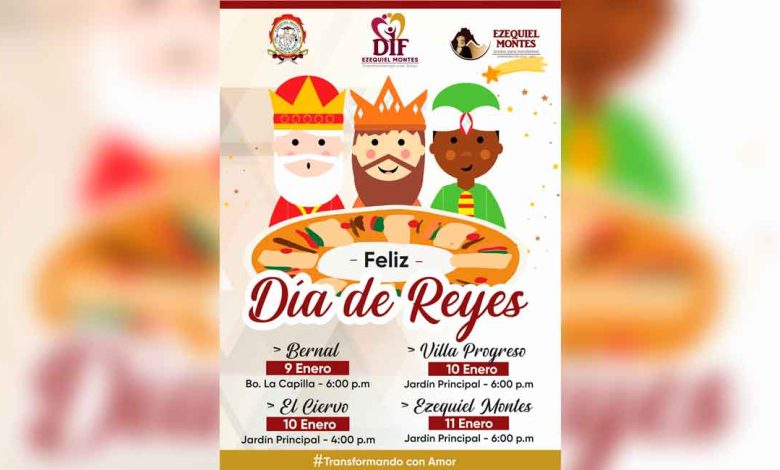 El Sistema Municipal DIF de Ezequiel Montes llevará a cabo una serie de festejos para celebrar el Día de Reyes, reafirmando su compromiso con la niñez y las familias de la región. Las actividades se desarrollarán del 9 al 11 de enero de 2025 en diferentes localidades, con el objetivo de fomentar la unión y la alegría durante estas festividades.