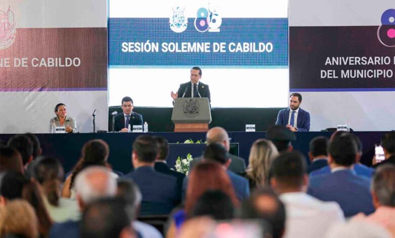 Durante la sesión solemne de Cabildo y acompañado por las y los regidores, el presidente municipal resaltó que, a 86 años de su creación como municipio, Corregidora es uno de los lugares con mejor calidad de vida en el país, gracias al trabajo y compromiso de su gente, convirtiéndolo en referente nacional en temas como seguridad, educación, transparencia, entre otros más.
