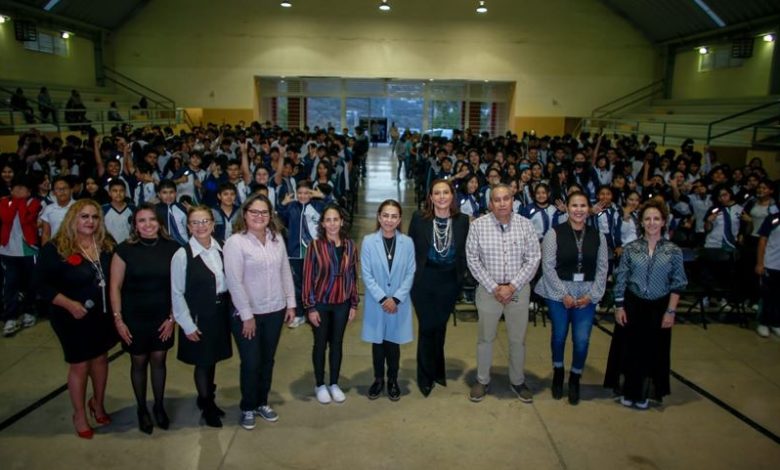 Josefina Vázquez Mota habló a las y los estudiantes sobre la violencia en el noviazgo, las consecuencias del sexting, grooming, chantaje emocional y bullying. Detalló que estas actividades son un delito por lo que es necesario identificar estas prácticas para salvaguardar su integridad.