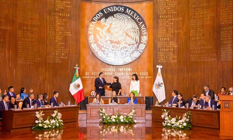 El titular del Poder Ejecutivo, Mauricio Kuri González, acudió al segundo Informe de Actividades de la LX Legislatura del Estado, en el Teatro de la República, recinto histórico donde la presidenta de la Mesa Directiva, Graciela Juárez Montes, le entregó el documento que muestra los resultados de quienes, a través del diálogo y consensos, forjaron iniciativas y leyes enmarcadas en cuatro ejes: Paridad Transversal, Familia y Educación; Movilidad Sustentable y Desarrollo Social; Gobernabilidad, Participación Ciudadana y Uso de las Tecnologías; además de Desarrollo Económico, Medio Ambiente y Calidad de Vida.