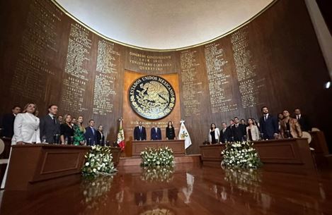 La Sesión Solemne inicia en el Teatro de la República, en el mismo lugar donde se firmó la Constitución que nos rige; donde se fundó el PRI; donde año con año, los 5 de febrero se viene a recordar la vocación federalista de nuestra patria. Y, querámoslo o no,