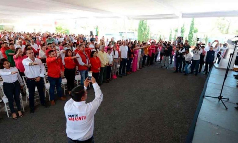 Cuando llegó al patio de los “Cuatro Mezquites” en el PRI, ya estaba lleno el patio trasero de este partido. Ahí tomó protesta a las organizaciones que tiene este partido, a la ONMPRI, a la Red de Jóvenes y al Movimiento Territorial que encabeza ahora el Lic. Oscar Altamirano, la sangre nueva y prometedora de este partido.