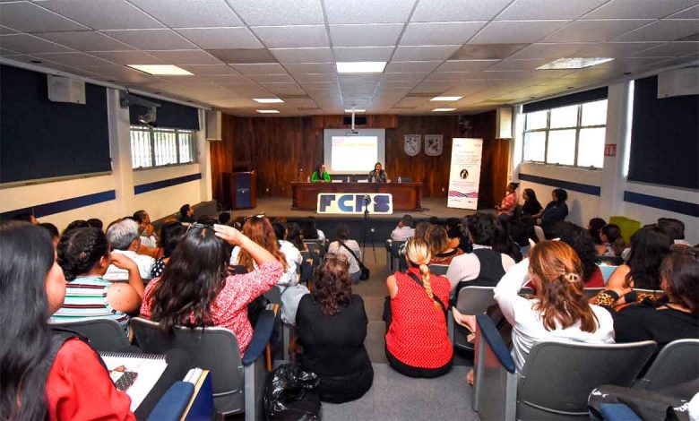 El evento convocado por el Instituto Nacional Electoral (INE) en Querétaro fue moderado por Alejandra Martínez Galán, coordinadora de la Unidad de Igualdad de Género y Cultura de Paz de la Facultad, ante un centenar de asistentes, en su mayoría mujeres.