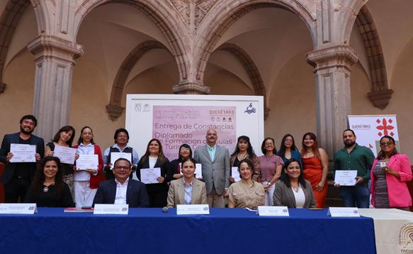 La Facultad de Filosofía (FFi) de la Universidad Autónoma de Querétaro (UAQ), en colaboración con la Secretaría de Turismo del estado (SECTUR), reconoció a 11 estudiantes del Diplomado de Formación de Guías de Turistas Generales 2023-2024, por acreditar satisfactoriamente esta formación en seguimiento de la Norma Oficial NOM-08-TUR-2002.