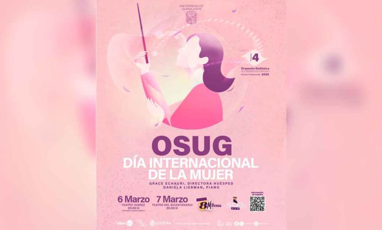 Además, el 6 de marzo a las 20:00 horas, el Teatro Juárez resonará con el talento musical de la OSUG, bajo la dirección de Grace Echauri y en compañía del talento en el piano de Daniela Liebman, con el programa “Día Internacional de la Mujer”, donde se interpretará la Obertura en Do, de Fanny Mendelssohn; el Concierto para piano Op. 7, en la menor, de Clara Wieck Schumann; y el estreno en Guanajuato de La Víspera, de Ana Lara, y Marfil, de Gina Enríquez. Este mismo programa también se podrá disfrutar el 7 de marzo a las 20:00 horas en el Teatro Bicentenario.