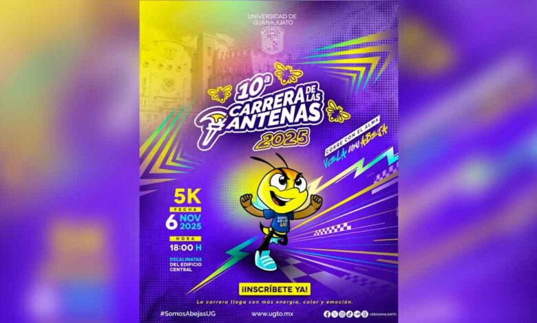 Guanajuato, Gto., 03 de octubre de 2025.- Llega la 10a edición de la Carrera de las Antenas, evento organizado por la Dirección de Desarrollo Estudiantil de la Universidad de Guanajuato (UG), donde podrán participar integrantes de la comunidad universitaria y de la sociedad en general, el próximo jueves 6 de noviembre a las 18:00 horas, en Guanajuato capital.
