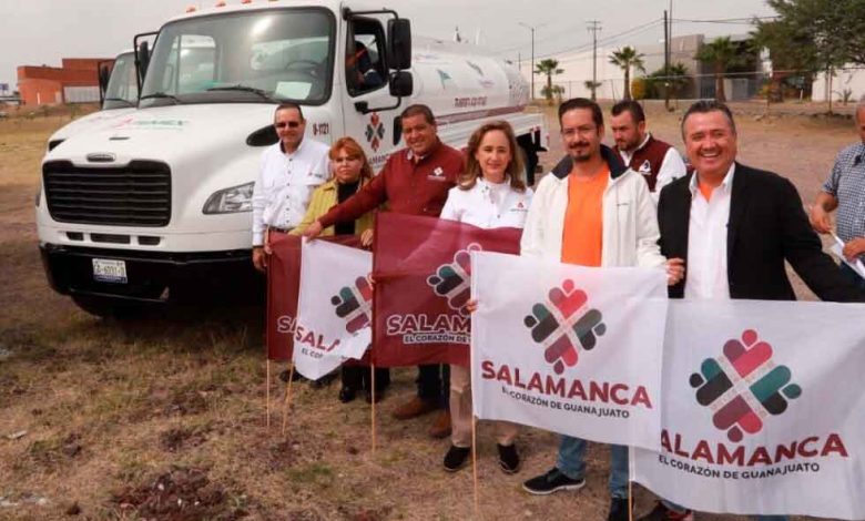 Salamanca, Gto.- Como parte del trabajo colaborativo entre el Gobierno de Salamanca y Pemex; el Municipio fue beneficiado con la donación de cuatro camiones tanque tipo cisterna con capacidad de 10 mil litros de agua, beneficio que se logra a través del Programa de Apoyo a la Comunidad y Medio Ambiente (PACMA).
