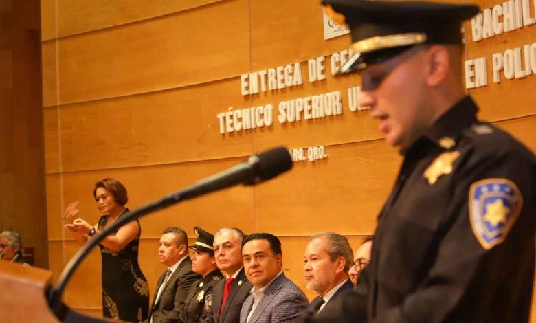 En su ceremonia, a la que acudieron como testigos de honor el Presidente Municipal de Querétaro, el Secretario de Seguridad Pública Municipal y el Fiscal General del Estado; el Policía Karol Ismael Almaraz Rodríguez, representante de la Segunda Generación de Técnico Superior Universitario en Policía Preventivo Municipal, comentó la importancia que para él tuvo el formarse en la corporación y de poder continuar con su profesionalización.