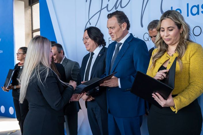 El titular del Poder Ejecutivo estatal, Mauricio Kuri González, encabezó la Conmemoración del Día Nacional de las y los Fiscales 2024, en el que personal de la Fiscalía General del Estado de Querétaro recibió estímulos, reconocimientos y certificaciones a personal que, de conformidad al Reglamento del Servicio Profesional de Carrera de la Fiscalía, ha demostrado un desempeño sobresaliente, antigüedad en el servicio y altas calificaciones en las evaluaciones periódicas de competencia, así como honestidad, aptitud y eficiencia en la procuración de justicia en favor de la paz y tranquilidad de las y los queretanos.