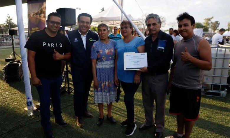 “Nosotros nos comprometimos a mejorar la calidad de vida de todas las familias del Municipio y eso implicaba buscar el cómo si entrarle a los condominios”, destacó Luis Nava al hacer entrega simbólica de certificados de inicio de obra a los representantes de los condominios que serán intervenidos.