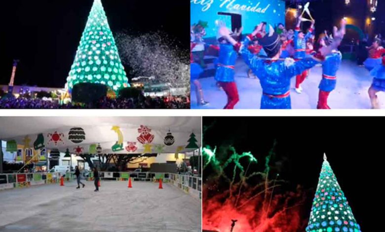 Como primera atracción, las autoridades estatales y municipales presenciaron un espectáculo de performance a cargo de personajes de películas infantiles, que dio paso al encendido del pino monumental de 25 metros de altura, que cuenta con una estrella tridimensional de 4.5 metros y 82 mil 500 focos de luces led, a su alrededor se montó una gran villa navideña.