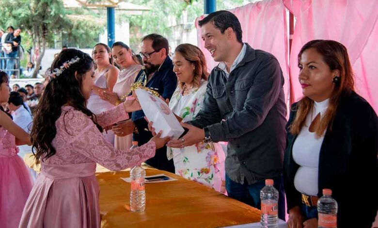 En la primaria “Juan N. Mier y Altamirano”, ubicada en Paseos del Marqués, el presidente municipal fue elegido por la comunidad estudiantil como padrino de generación. También se entregaron reconocimientos a los alumnos que concluyeron satisfactoriamente el año escolar, así como a quienes destacaron en la Olimpiada del Conocimiento. Además, se reconoció a las seis alumnas que integran la escolta de la institución por su sobresaliente participación en concursos como Pentatlón y manejo de asta bandera.