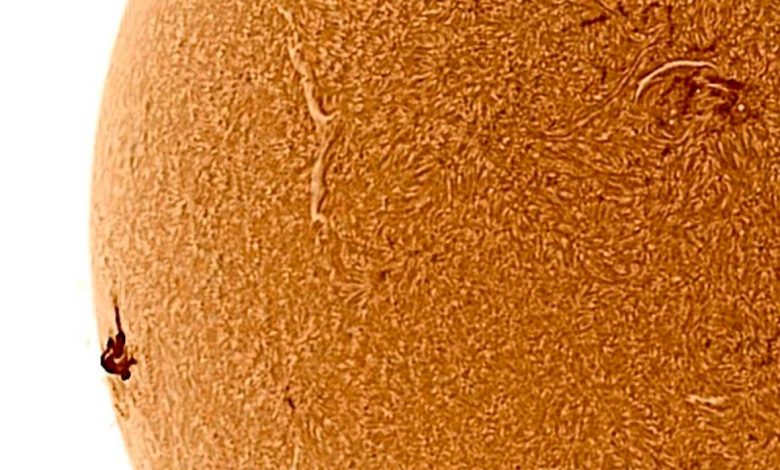 En esta imagen podemos ver esas capas solares que increíblemente asemejan a estambres o finos cabellos. Al igual, que algunas manchas solares. Una mancha solar es un área relativamente oscura en la fotosfera del Sol, causada por campos magnéticos concentrados que inhiben la convección y, por lo tanto, reducen la temperatura local. Se producen debido a la interacción de los campos magnéticos generados por el movimiento del plasma en el interior del Sol.