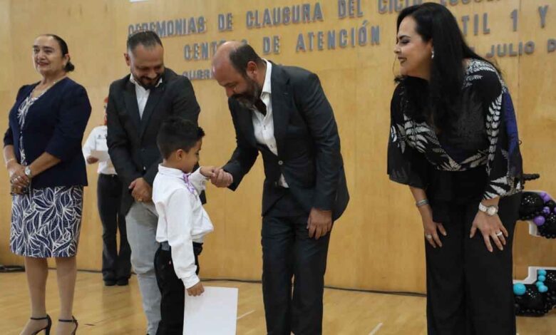 El director general del Sistema Estatal DIF, Óscar Gómez Niembro, encabezó la ceremonia de clausura del ciclo escolar 2023-2024 de los Centros de Atención Infantil 1 y 2 (CAI), que atienden a las y los hijos de madres trabajadoras y familias en situación de vulnerabilidad que carecen de cobertura de seguridad social.