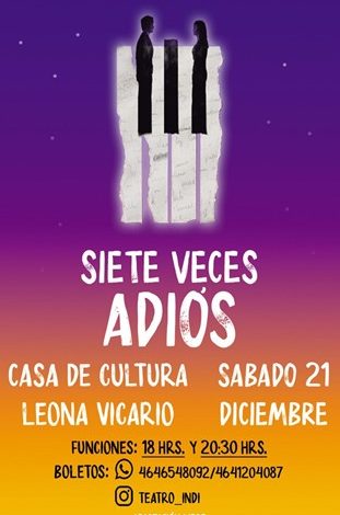 Es hoy la cita para presenciar la obra de teatro «Siete veces adiós», en la sala de teatro de la casa de la cultura de Leona Vicario.