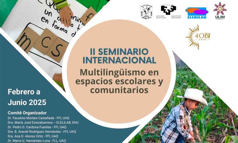 La Universidad Autónoma de Querétaro (UAQ) convoca a las personas interesadas a sumarse al segundo Seminario Internacional “Multilingüismos en espacios escolares y comunitarios”, que se realizará a partir del próximo 18 de febrero y tendrá una duración de cuatro meses, con el objetivo de fomentar un diálogo intercultural entre docentes, estudiantes e integrantes de múltiples comunidades lingüísticas.