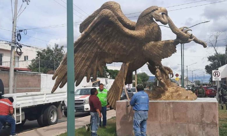 Salamanca, Gto.-  Para prevenir accidentes y salvaguardar la integridad física de la ciudadanía; la Dirección General de Servicios Públicos, en coordinación con Protección Civil, Movilidad, Seguridad Pública y Obra Pública, procedieron a retirar el monumento de El Águila, que se localizaba en las inmediaciones del C4,  para dar mantenimiento a la estructura.